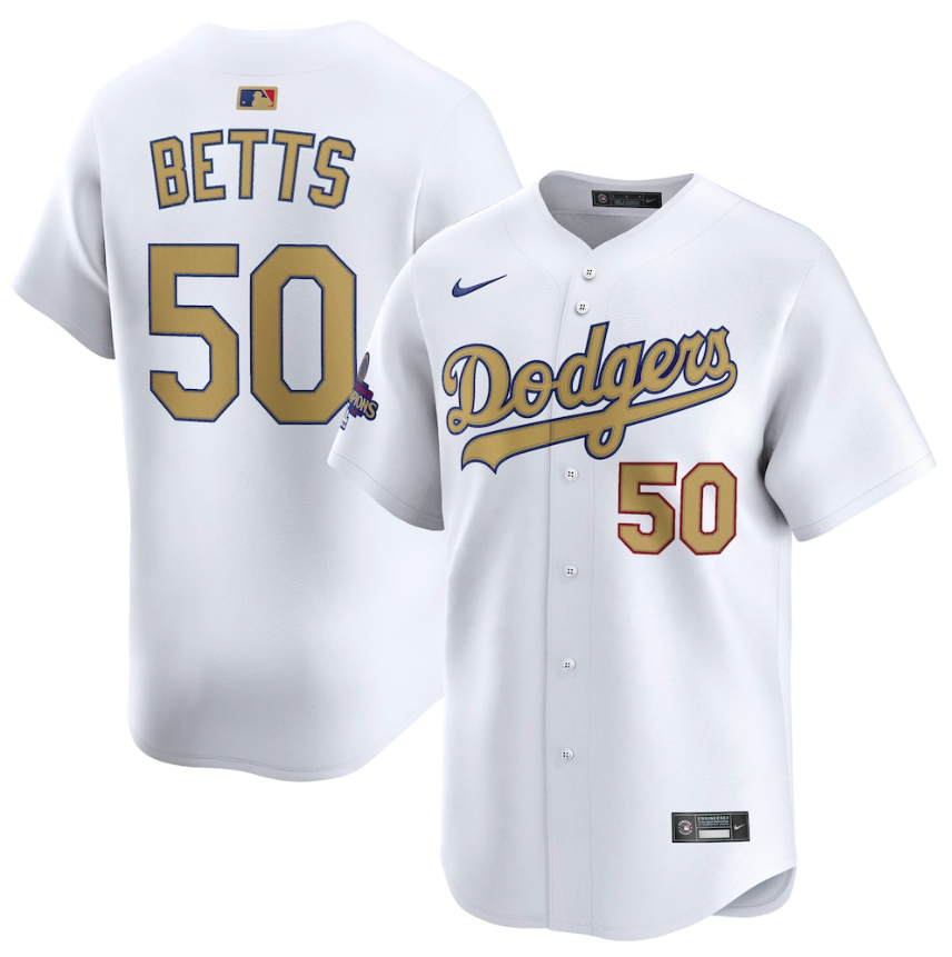 Men’s Los Angeles Dodgers White 2025 Gold Collection Limited Jersey